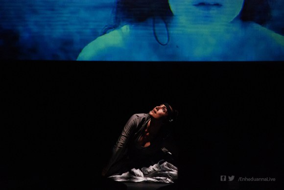 A Live Brain-Computer Cinema Performance is a new type of interactive work combining live cinema and the use of Brain-Computer Interfaces (BCIs). The project has led to the development of a new system, which has enabled so far the simultaneous multi-brain interaction of one performer and two audience members using Electroencephalography (EEG)-based BCIs in the context of live cinema and mixed-media performances. It was implemented for the first time in ‘Enheduanna – A Manifesto of Falling’ Live Brain-Computer Cinema Performance, which was also a neuroscience experiment in a real-life environment with the presence of public audience.